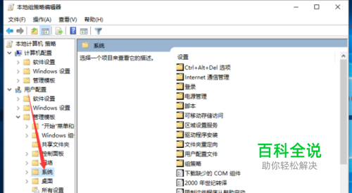 4、在本地组策略编辑器窗口的左侧小窗口中,依次展开“用户配置-->管理模版-->系统”选项。如图所示;