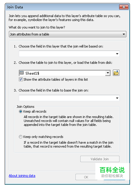 选择shp文件和excel表相关联的属性表和属性列字段,以及关联表对应的字段。