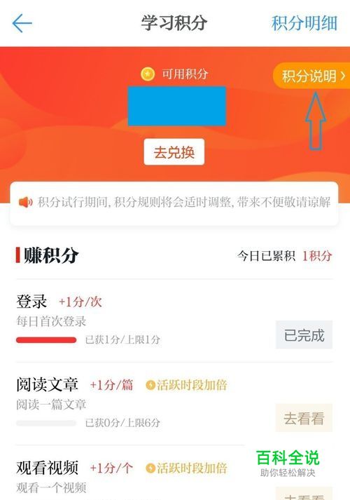 第二步:在积分界面,点击右上角“积分说明”可以看到详细的说明,下面分项具体介绍一下。