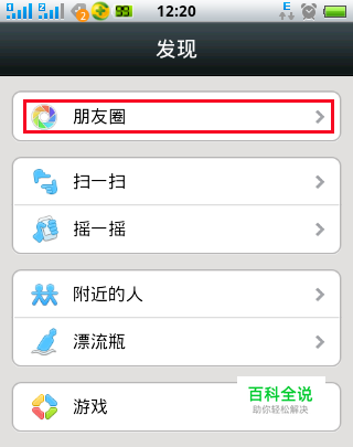 第二步:进入【发现】界面,此时第一个就是朋友圈,我们平常也是在这里看到朋友的相关信息,点击进去。