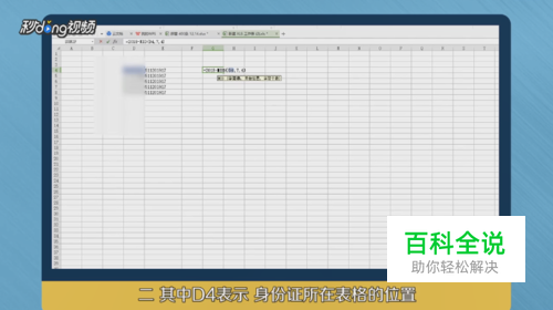 D4表示身份证所在表格的位置,7代表从身份证第7位开始截取。