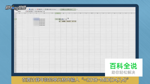 在单元格中输入“=2018-MID(D4,7,)”。