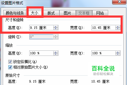 在弹出对话框中点击大小,设置高度和宽度,确定。