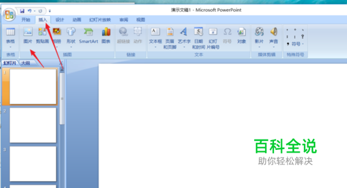 如图打开我们需要进行操作的PPT课件,点击上方的“插入”--“图片”。