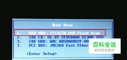 在弹出的启动项窗口中找出并选择以“usb”开头的选项