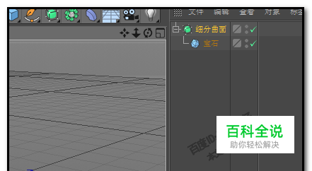 创建一个宝石物体; 按住ALT键,再点细分曲面。宝石是细分曲面的子级。