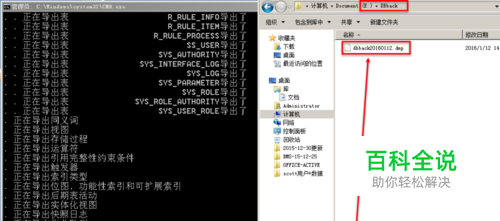 输入命令 exp bms/BMSPASS@TCDB file=E:\DBback\dbback20160112.dmp 这里说明一下 这里的bms是指备份时,登录数据库实例TCDB的用户名; 这里的/是语法符号。 这里的BMSPASS是用户bms登录数据库TCDB时的密码; @是语法符号。 这里的TCDB是Oracle数据库的实例名。 这里的file=E:\DBback\dbback20160112.dmp 是只指备份文件的存放路径。