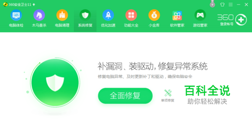 如果没有360安全卫士您可以用电脑自带的电脑卫士进行系统修复,这样会解决声卡驱动的问题