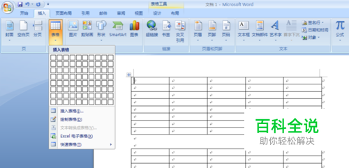 打开word2007(演示版本),插入表格,中间断开