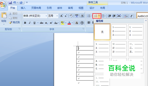 下面是很关键的一步了。 继续选中需要连续自动编号的行或者列的表格,选择 开始—段落—编号—定义新编号格式(同之前,序号从“1”开始,你没看错哦,是“1”),然后确定。效果如下图