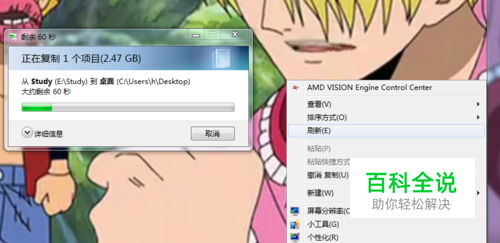 这时,看到速度一点一点的变慢,觉得不耐烦,我们可以点击桌面鼠标右键-->刷新。