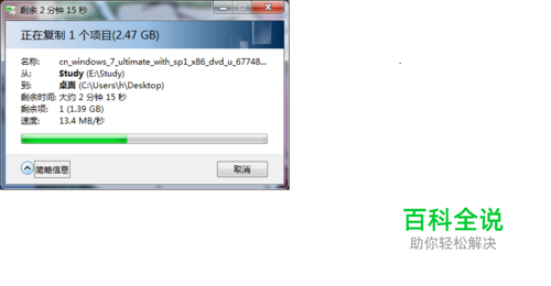 通常我们复制文件,都会弹出这样的对话框,显示文件的大小,速度和剩余时间。