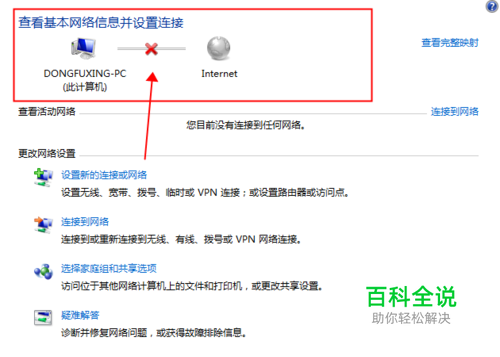 如果你看到了这样的显示,说明你的网络已经成功的断开了。你可以根据需要进行断网操作。等你操作完后,又想把网络接上时,你开始会觉得无从下手。到底要点哪里呢?请往下看!