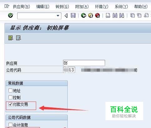 登录SAP系统,输入FK03回车,会弹出主数据供应商的查询界面。可以勾选全部查询,也可以勾选部分查询,这里因为我们主要是查询供应商银行信息,所以勾选常规数据:付款交易和公司代码数据:付款交易。