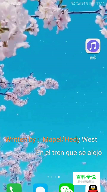 设置好之后打开手机桌面,就可以看到音乐播放的歌词啦,如下图
