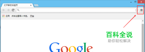 打开google浏览器,点击谷歌浏览器右上角的“三”自定义及控制图标,如下图所示。