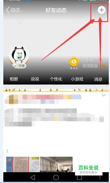 进入手机QQ空间之后,点击右上角的加号图标,如图所示。