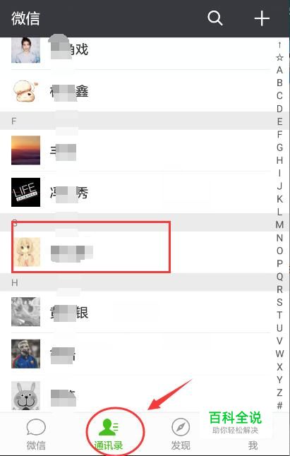 首先打开微信,进入中间图中的联系人界面,从中选择在一个我们要添加到桌面的朋友。
