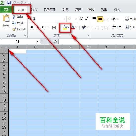 如图,全选中表格之后,点击开始菜单下的填充图标。