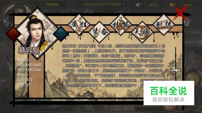 再来看看慕容复的属性点,30级变身完成后的慕容复的属性简直逆天,拳法剑法熟练度150,刀法奇门熟练度120,这么高这么全面的熟练度游戏里非常少见。