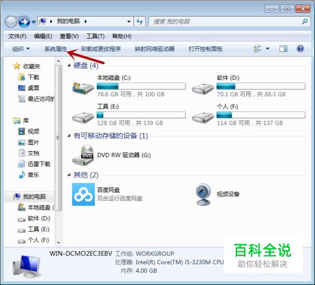 在电脑上,打开“我的电脑”,在属性栏中,选择“系统属性”