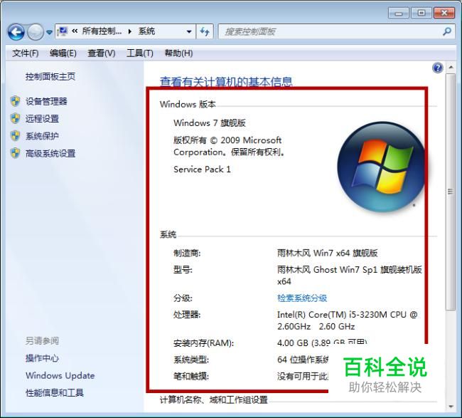 进入系统属性界面后,即可查看到电脑系统的相关信息。