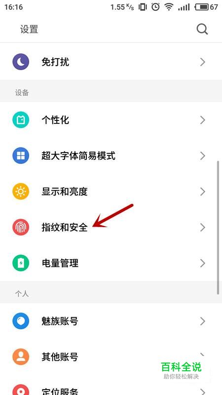 进入设置后,选择“指纹和安全”