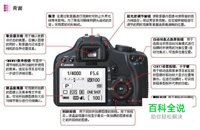 首先,我们需要了解单反相机的构造以及基本功能;(相机背面)