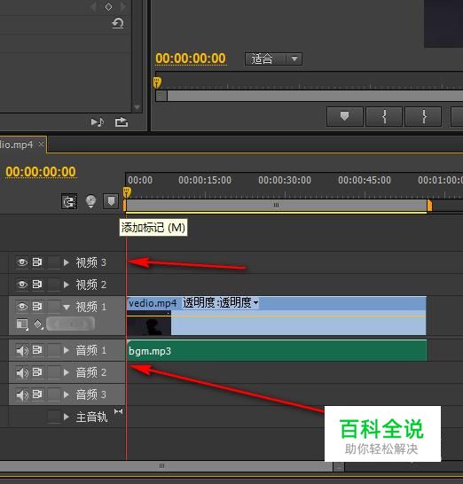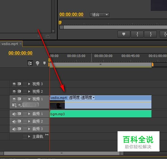 如图,这就是我们进行声音淡入淡出操作的视频和音频。至于怎么导入视频之类的废话,相信能做到这一步的同学已经不需要我再多说了。