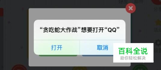 如果是第一次用QQ登录贪吃蛇,这是手机会提示贪吃蛇大作战想要打开QQ,我们点击“打开”。