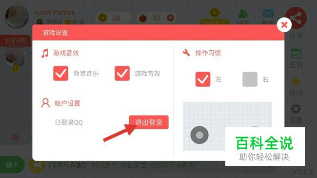 如果我们想要退出QQ登录,点击游戏界面“设置”按钮,在“游戏设置”对话框中点击“退出登录”就可完成。