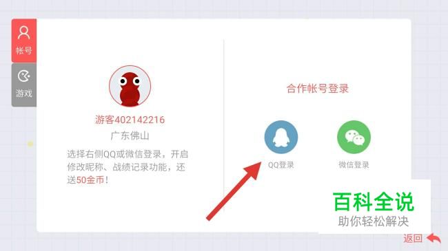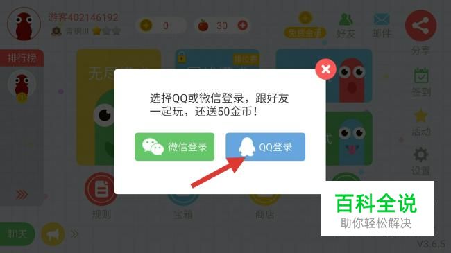 点击后手机会弹出一个对话框,可以选择和微信好友玩,也可以选择和QQ好友玩。我们点击QQ登录,之后的操作对照第六步骤即可。