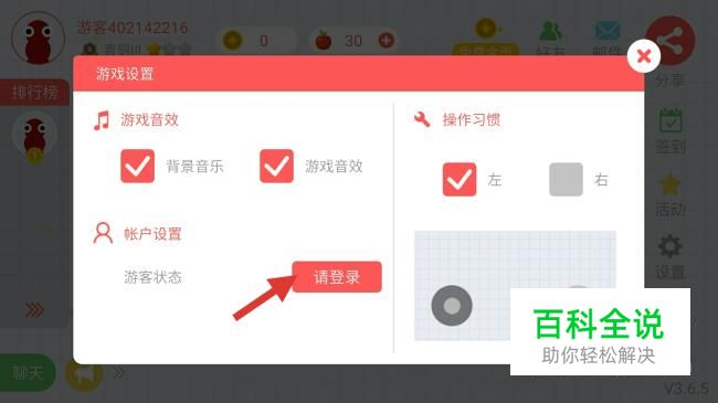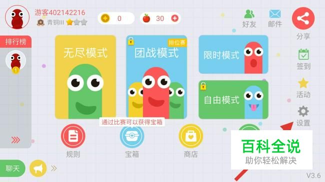 登录成功后,我们可以在游戏界面的左上角看到,目前是以游客身份进行游戏。如果想要通过qq进行登录,可以点击右边“设置”。