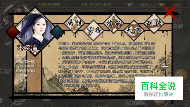 去往秦红棉居触发剧情,这里都是对话,完成之后木婉清加入队伍,主角和木婉清领悟天赋夫妻同心。