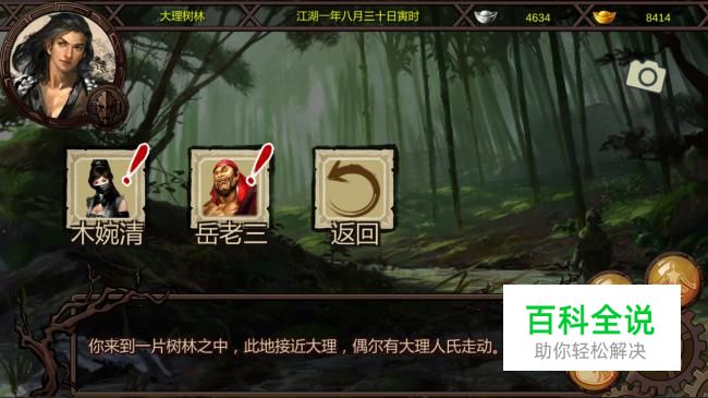 大理树林就是缘分的开始,在这里我们遇到几个天山童姥的弟子围攻一个女子,那个女子虽然戴着面纱,但是一看就是美女,不错,就是我们要娶的木婉清。所以,当然选择解救老婆了。