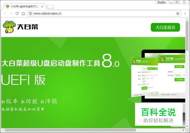 打开“http://www.dabaicaipe.cn”下载大白菜装机软件。