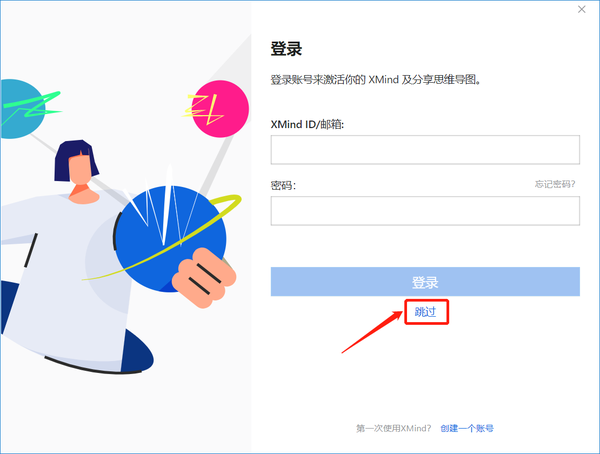 4、弹出登录界面,点击“跳过”。