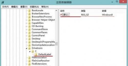 之后我们再进入DefaultLabel ,打开并修改字符串值为“Windows8”即可。这样你的磁盘名称就可以自己修改成喜欢的了,如果之前磁盘名称非常混乱的话不妨借这篇攻略好好的修改一番吧。