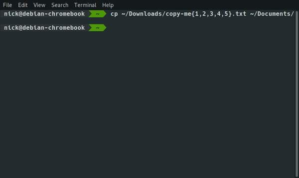 You can also copy multiple files. The Linux command line lets you target multiple items at once with brackets {}. You can use them to list the names of each file to be copied separated by commas.