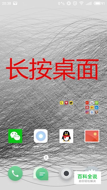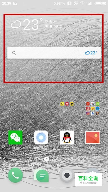 (本文已添加天气插件为例,其余插件添加方法相同) 进入手机界面,手指按住屏幕,不要动,等待弹框。