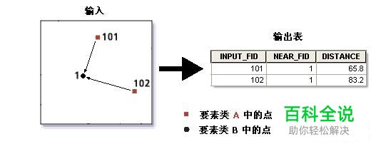 生成近邻点表 在搜索半径范围内,确定输入要素中的每个要素与邻近要素中的一个或多个附近要素之间的距离。 结果将记录在输出表中。