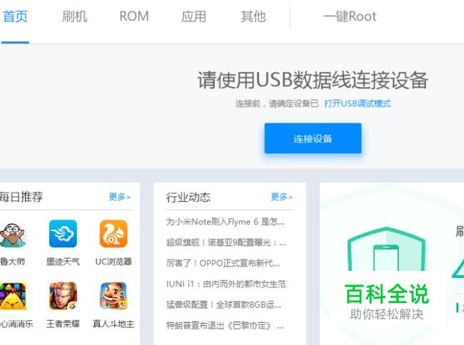 通过数据线将手机连接到刷机精灵软件上。连接成功后确定在手机上安装刷机精灵。