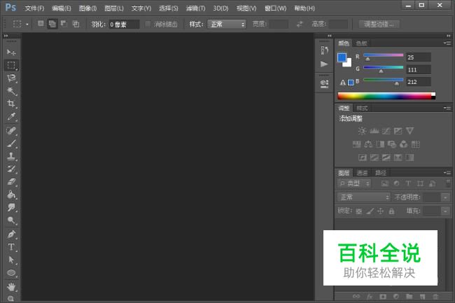在桌面上双击Photoshop的快捷图标,打开Photoshop这款软件,进入Photoshop的操作界面,如图所示: