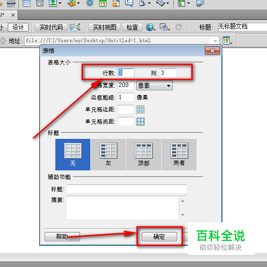 接着就会弹出一个小窗口用来设计表格的行数和列数,设计完之后点击确定。