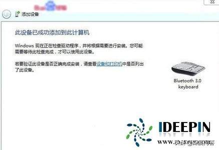 5、这时系统就会显示添加设备成功,我们就可以使用我们亲爱的蓝牙键盘了。