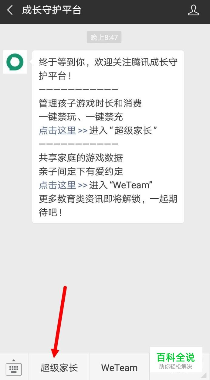 打开微信,点击公众号找到腾讯成长守护平台,如果没有关注这个公众号的话,直接去搜索关注!