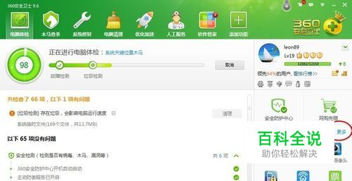 打开360安全卫士9.6最新版,在主页的右下角的找到“ 功能大全”点击“更多”进入。。
