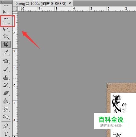 使用ps将我们的图片打开,然后在ps的工具箱内找到矩形选框工具,如图所示: