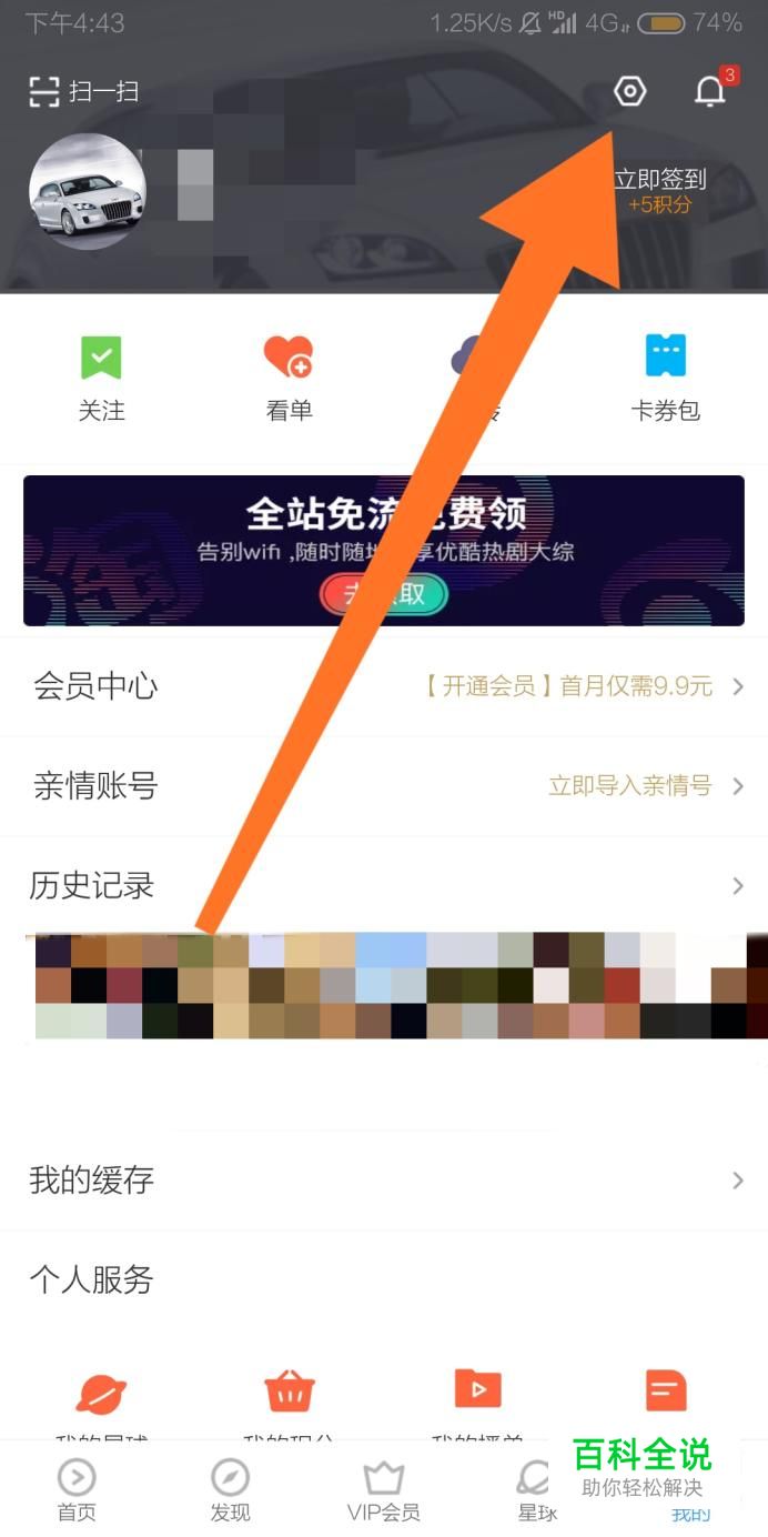 然后点击“我的”页面右上角的锯齿状设置图标。