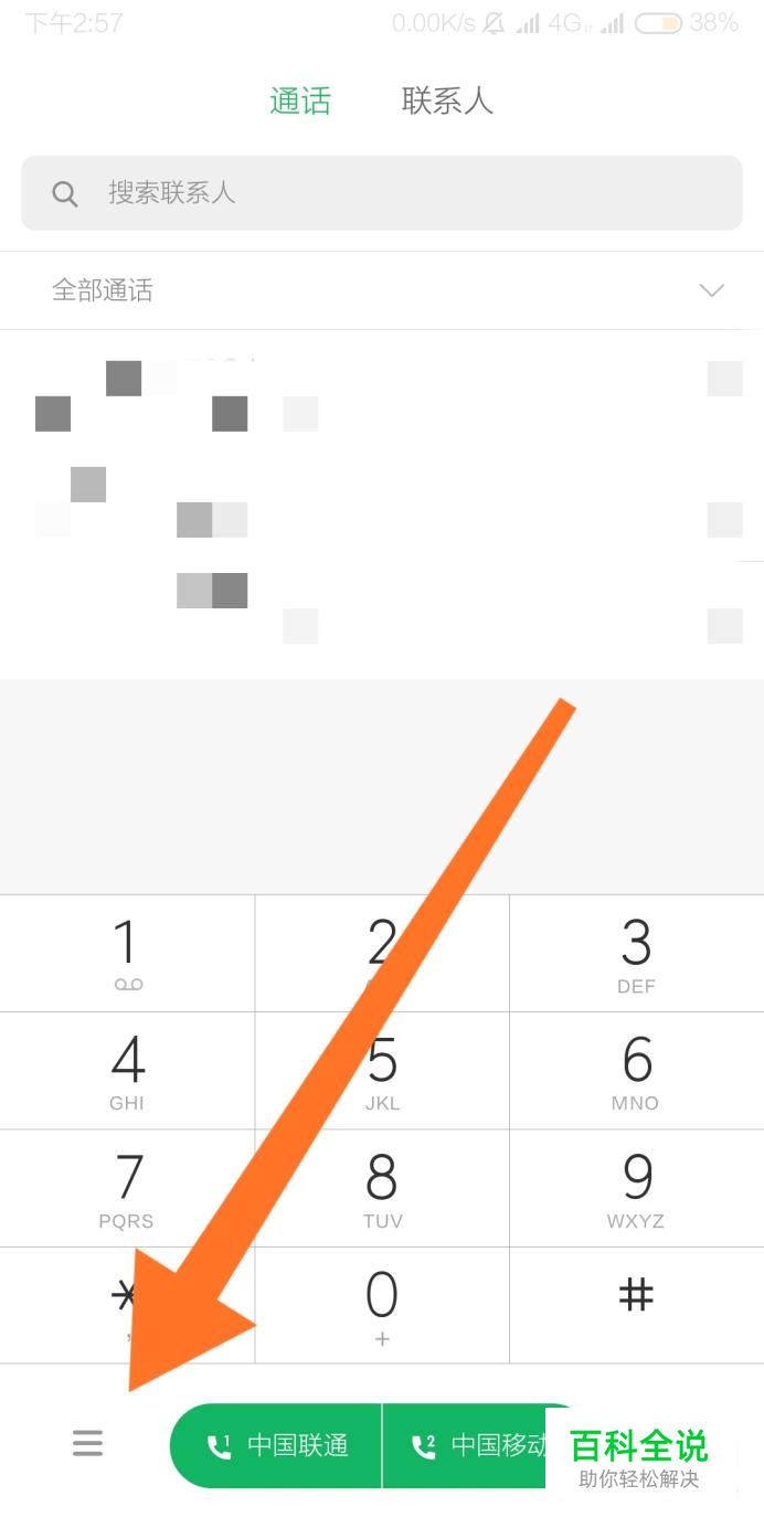进入拨号界面后,点击左下角的菜单键。